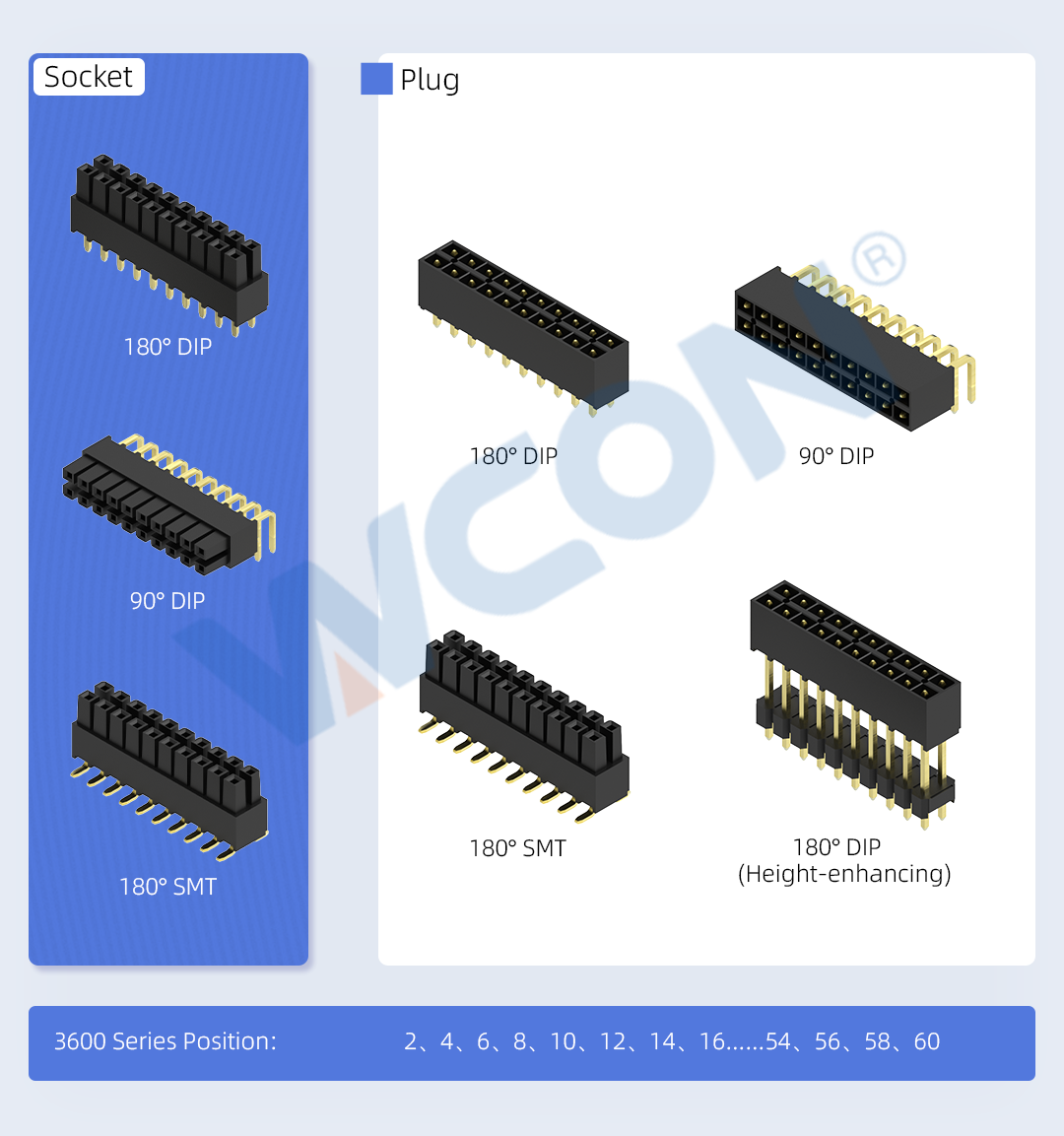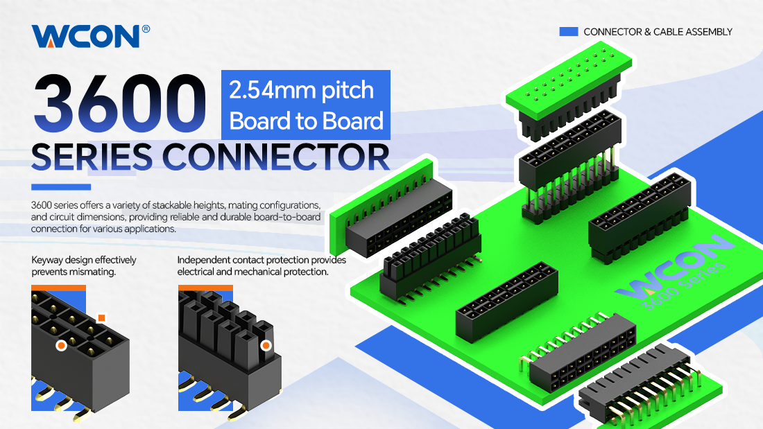 Diseñada para los retos cambiantes de los sistemas de control industrial, la serie WCON 3600 es un conector de placa a placa con paso de 2,54 mm. Ofrece flexibilidad de diseño gracias a múltiples alturas de apilamiento y tipos de acoplamiento, adaptándose fácilmente a las variadas dimensiones de la PCB y a las limitaciones espaciales.