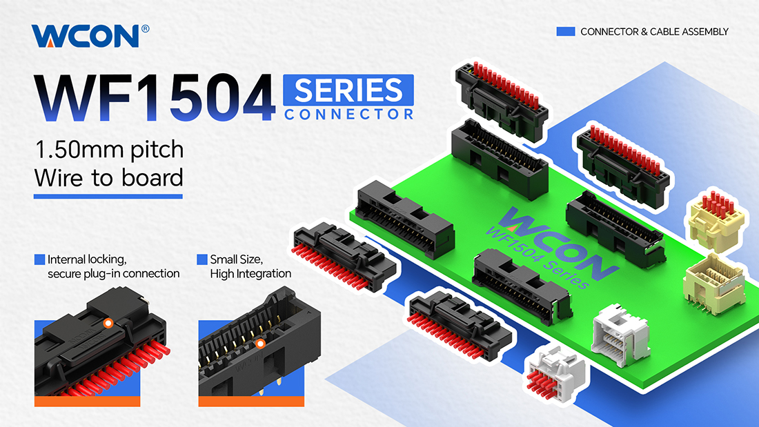 A medida que los equipos industriales y los vehículos de nueva energía evolucionan hacia una mayor densidad de integración y mayor complejidad, la demanda de conectores que ofrezcan alta fiabilidad, baja fuerza de inserción y un bloqueo resistente a vibraciones en espacios limitados es cada vez más crítica. La serie WF1504 de WCON Electronics es un conector cable-plato con paso de 1,50 mm, disponible en configuraciones de una y doble fila, así como en versiones de montaje superficial y de agujero pasante. Soporta montaje tanto vertical como en ángulo recto, ofreciendo adaptación flexible a varios ángulos de acoplamiento.