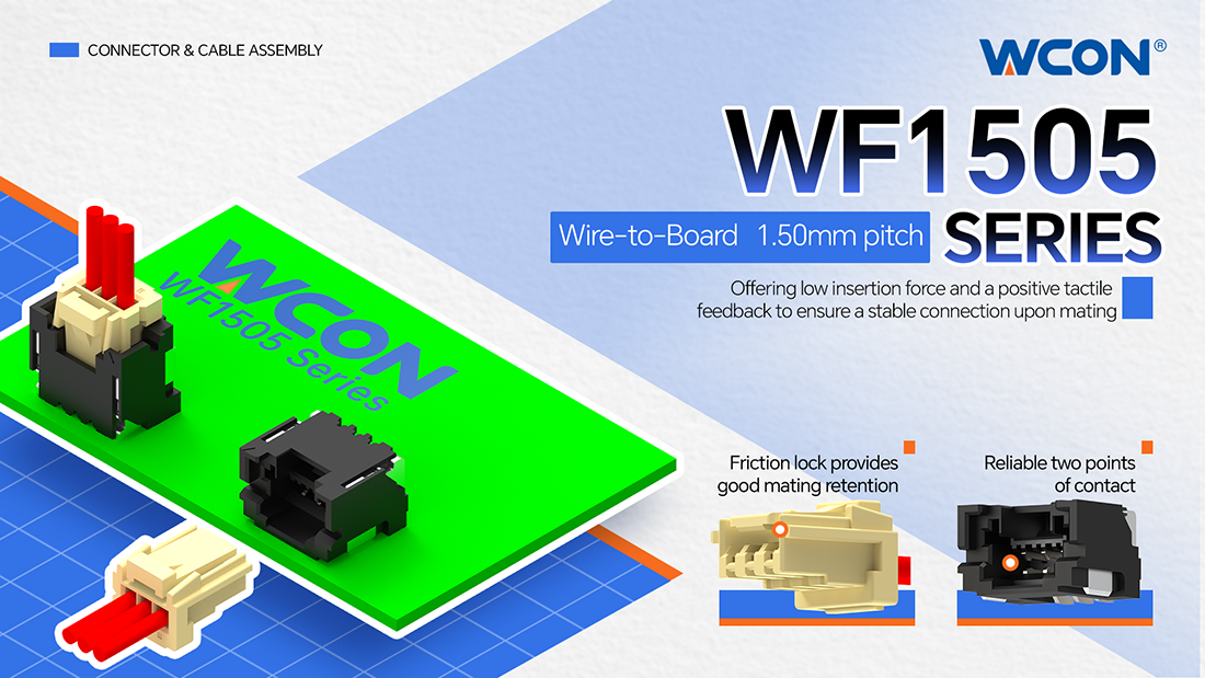 A medida que los dispositivos electrónicos se vuelven cada vez más compactos y modulares, se imponen mayores exigencias a la estabilidad del conector. La serie WF1505 es un conector de cable a placa de tipo crimpado de paso de 1,50 mm que presenta una baja fuerza de inserción y una sensación táctil distintiva. Junto con la estructura anti-desenchufe, garantiza una alineación precisa y conexiones estables.