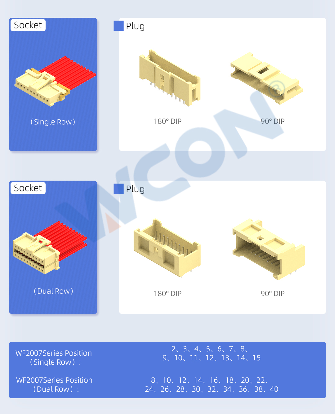 Conector de la serie WF2007: paso de 2,0 mm, doble bloqueo, diseño robusto de doble contacto