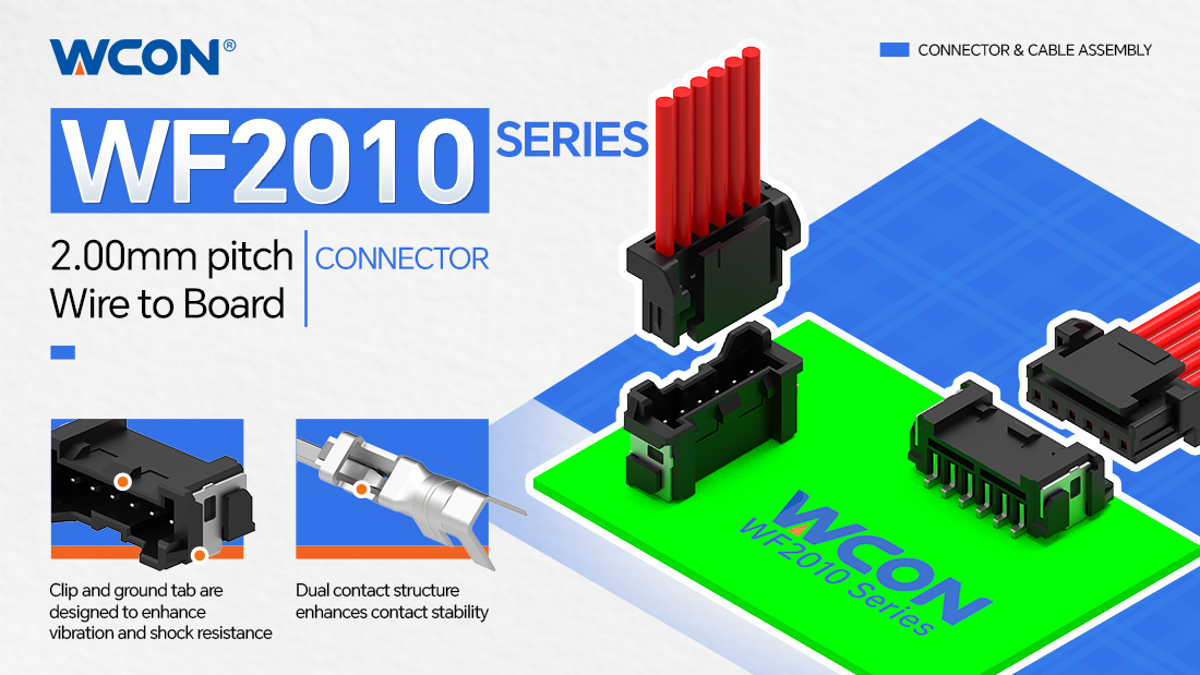Para satisfacer las estrictas exigencias de fiabilidad de la conexión de señales en la electrónica automotriz y equipos industriales que operan bajo condiciones de vibración y choque, Weifeng Electronics presenta la serie WF2010—un conector de alta densidad de cable a placa con paso de 2,00 mm. Con un diseño de terminal de doble contacto, mejora significativamente la estabilidad del contacto y ofrece una resistencia superior a las vibraciones y a los golpes. Su estructura compacta permite una huella pequeña y diseños de alta densidad, permitiendo opciones de montaje flexibles y diversas.