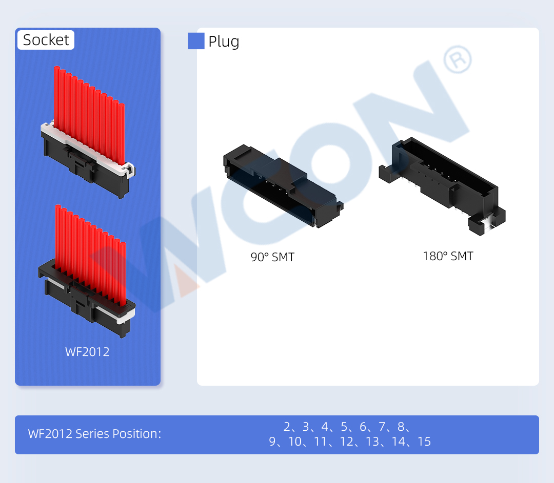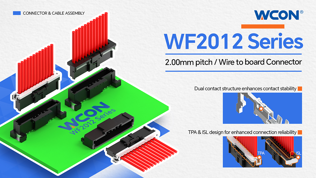 As automotive electronics and industrial control systems continue to evolve toward higher integration and reliability, connectors face increasingly stringent requirements for vibration resistance, shock resistance, and space utilization. WCON Electronics’ WF2012 series is a 2.00mm pitch automotive-grade wire-to-board connector featuring a high-density, compact design. Its dual-contact terminal structure effectively ensures contact stability and superior vibration and shock resistance.